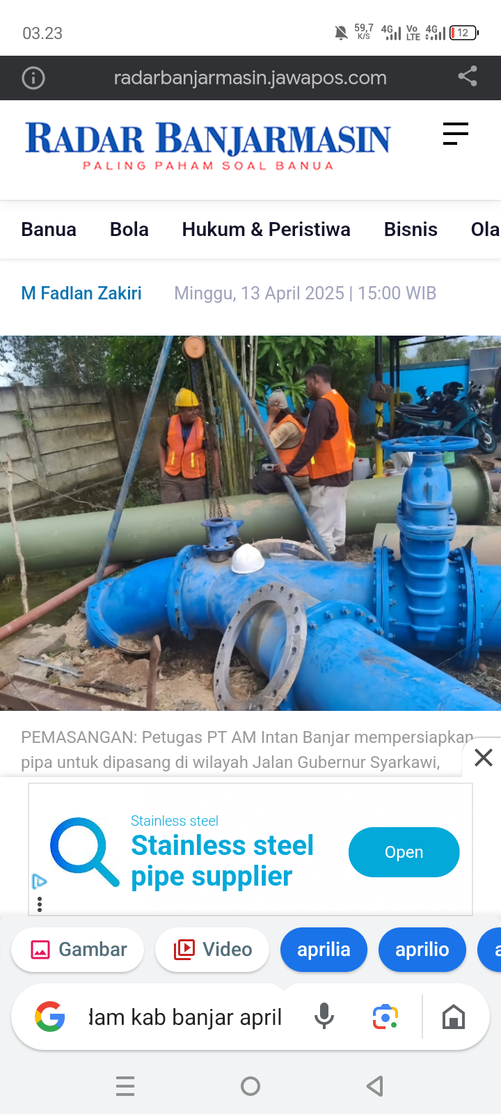 Pasalnya, besok (14/4/2025) distribusi air bersih di sebagian wilayah Kota Banjarbaru dan Kabupaten Banjar, bakal terhenti selama 24 jam.
