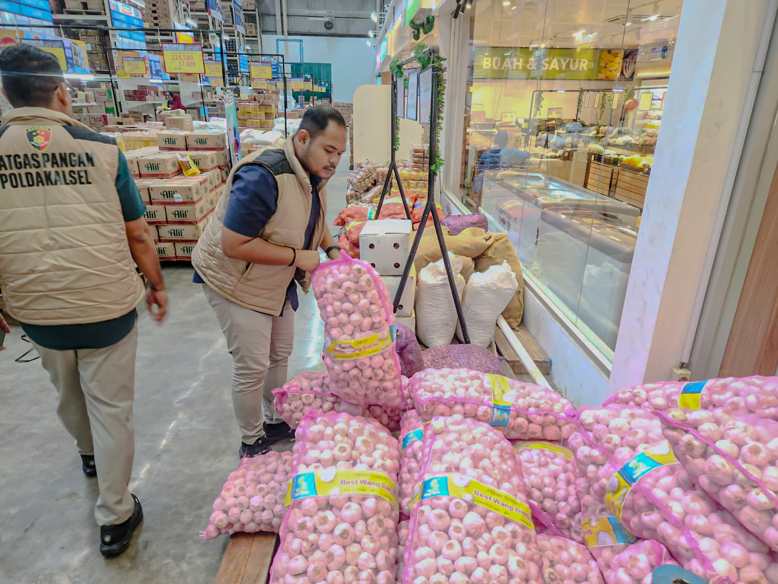 Tim Satuan Tugas (Satgas) Pangan Polda Kalimantan Selatan melaksanakan pengecekan ketersediaan dan harga bahan pokok penting (bapokting) menjelang Hari Raya Idul Fitri 1447 H. Kegiatan tersebut dipimpin oleh AKP Hotman Mangasi Purba, S.H., didampingi AKP Muhammad Rezky, S.Tr.K., S.I.K., Brigadir Willy P. Lumban T, S.H., M.M., Brigadir Derissa Anggita Pebrianti, S.H., Brigadir Raka Gilang Wira Darmawan, S.H., M.M., Briptu Fahmi Mubarak, S.H., dan Briptu Muhammad Akbar Perdana, S.H.