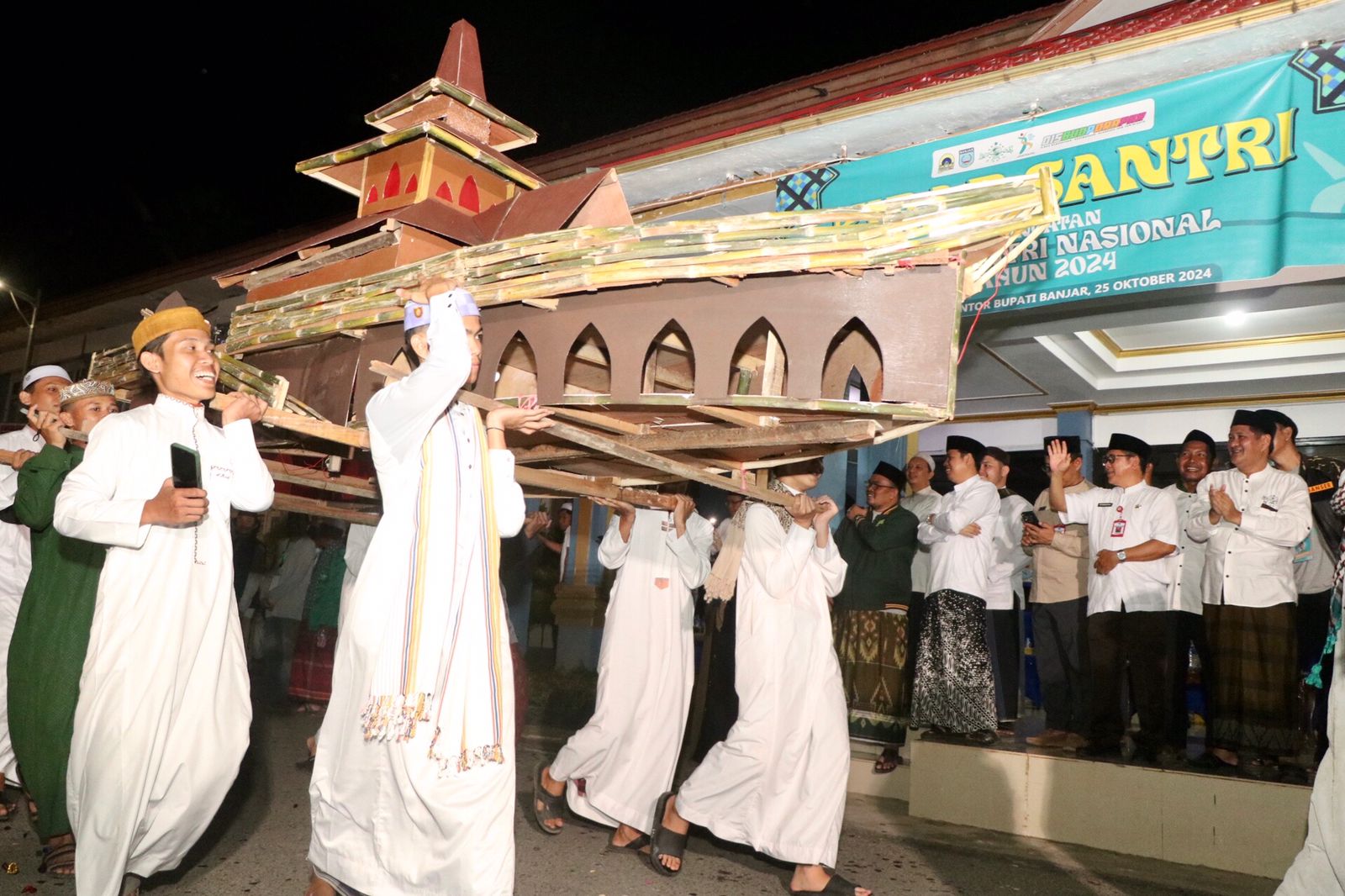 Dengan tema hari santri tahun 2024 yakni “Menyambung Juang, Merengkuh Masa Depan” kirab santri dilepas Pjs Bupati Banjar Akhmad Fydayeen diwakili Asisten Perekonomian dan Pembangunan H Ikhwansyah dari halaman kantor Bupati di Martapura, Jum’at (25/10/2024) malam.