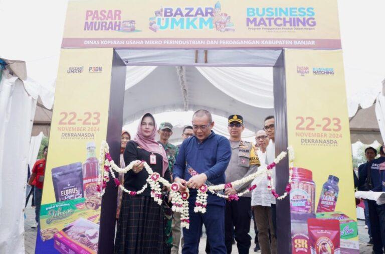 REPUBLIKBERITA.CO.ID, KABUPATEN BANJAR- Pemerintah Kabupaten (Pemkab) Banjar melalui Dinas Koperasi Usaha Mikro Perindustrian dan Perdagangan (DKUMPP) menggelar Pasar Murah dan Bazar UMKM produk unggulan daerah, di halaman Gedung Dekranasda Kabupaten Banjar, Jumat (22/11/2024) pagi.